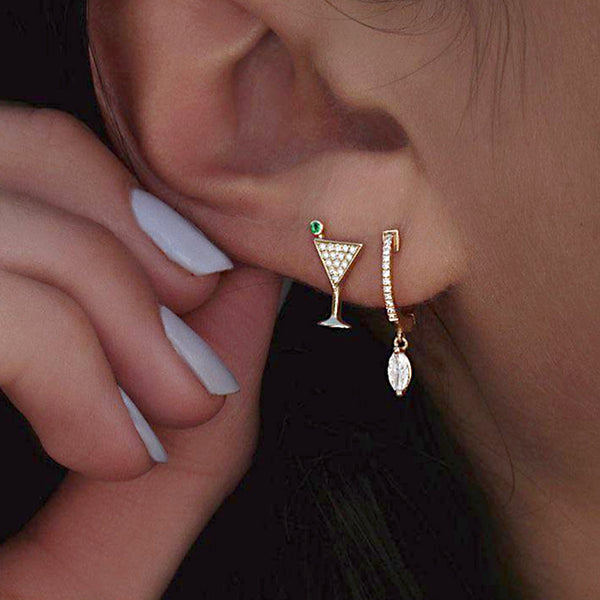 Idea: Wine glass Water drop gem crystal gold earring set